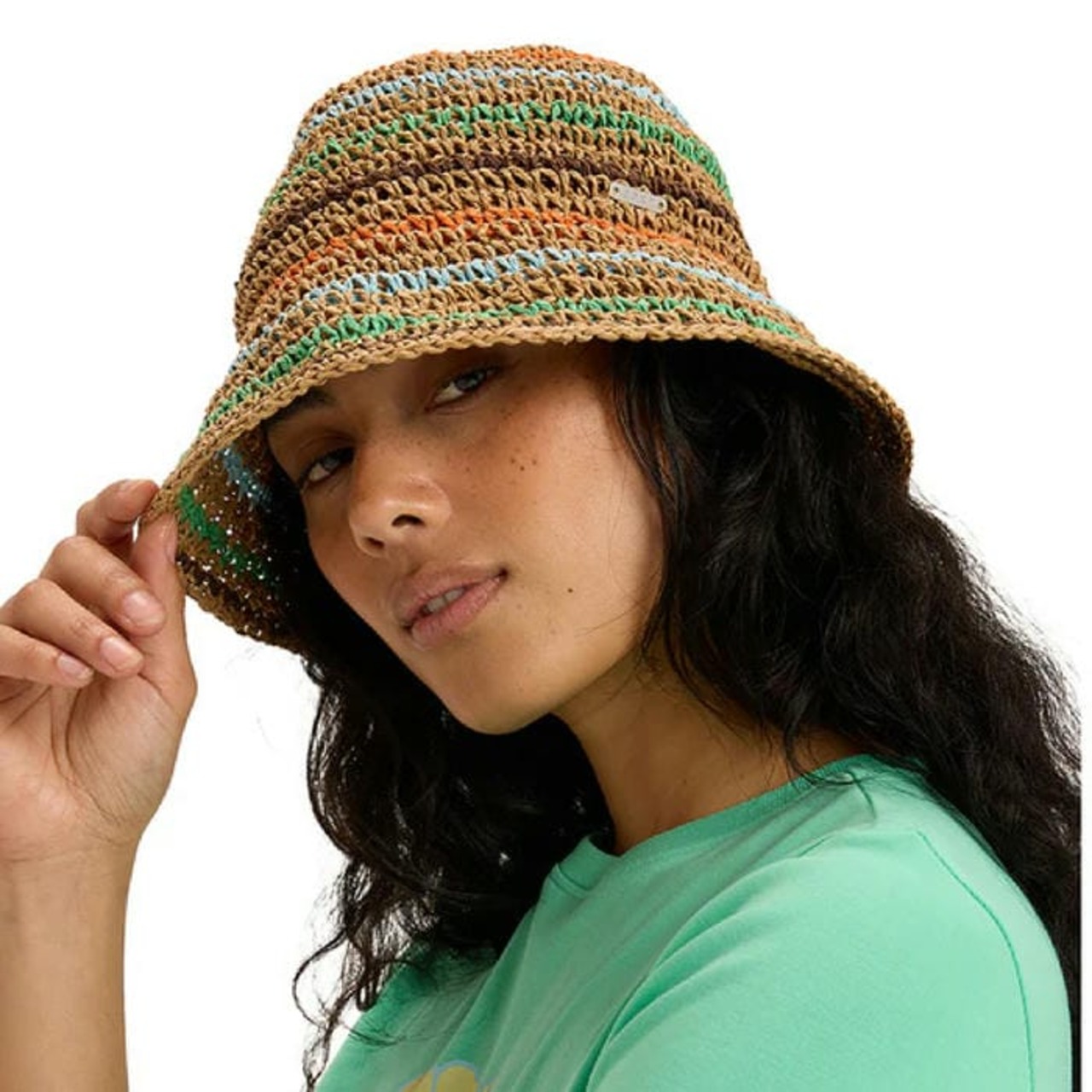 ROXY CANDIED PEACY ERJHA04423 ハット ペーパーストロー カラーボーダー メタルプレート ロゴ 麦わら帽子 レディース フリーサイズ YEF0 ロキシー 正規品