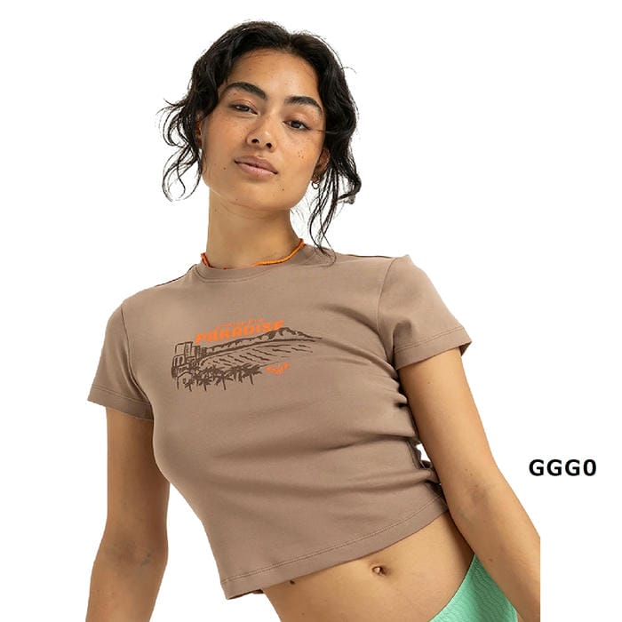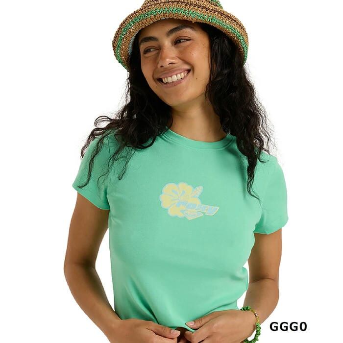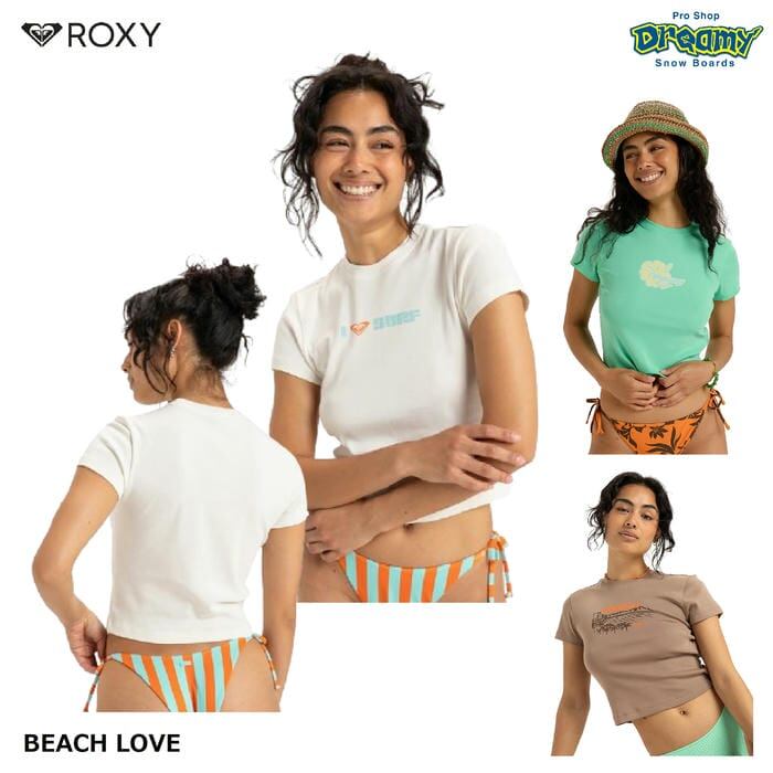 ROXY BEACH LOVE ERJZT05968 Tシャツ 半袖 クロップド丈 コットン素材 ショート タイト プリント ロゴ ピチT ロキシー 正規品