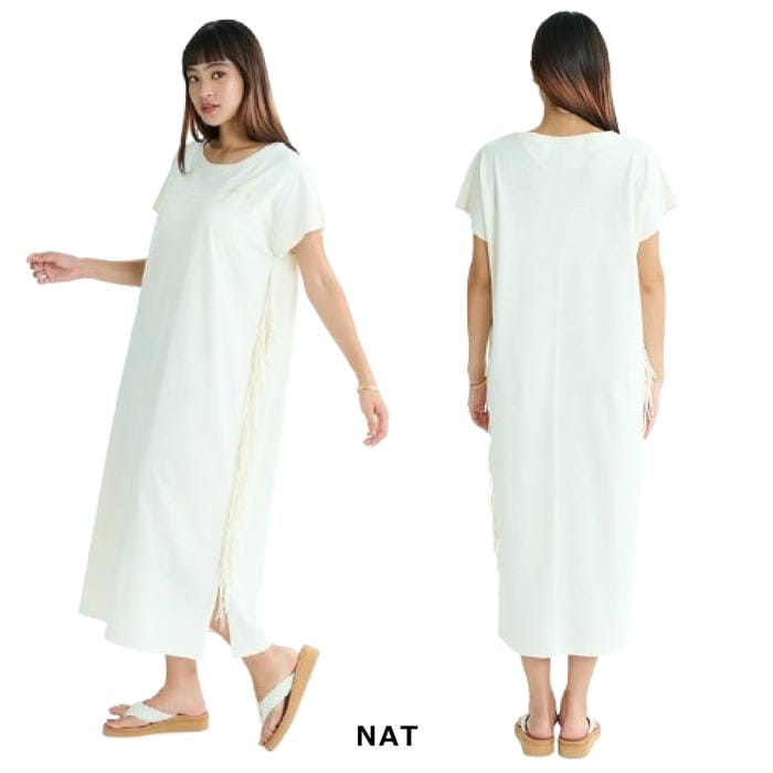 ROXY LABYRINTH DRESS RDR252031 ワンピース 半袖 フレンチスリーブ 両サイドスリット フリンジ ロング丈 染め加工 ビンテージライク 刺? ロキシー 正規品