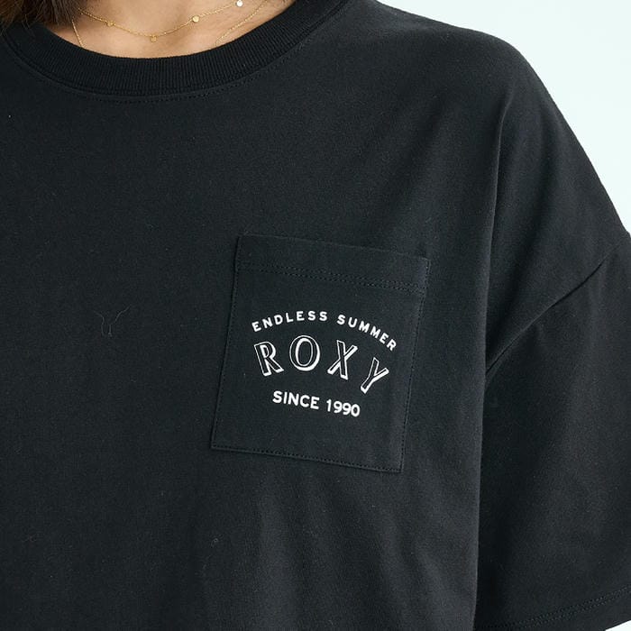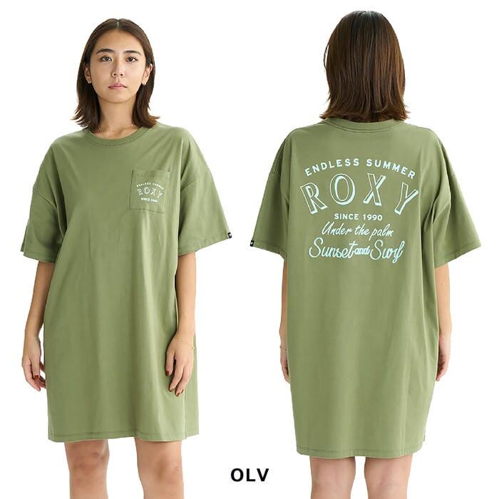 ROXY AMAZING PLACES RDR252032 ワンピース 半袖 Tシャツ ミニ丈 オーバーサイズ バックプリント 胸ポケットコットン素材 刺? BLK OLV NAT ロキシー 正規品