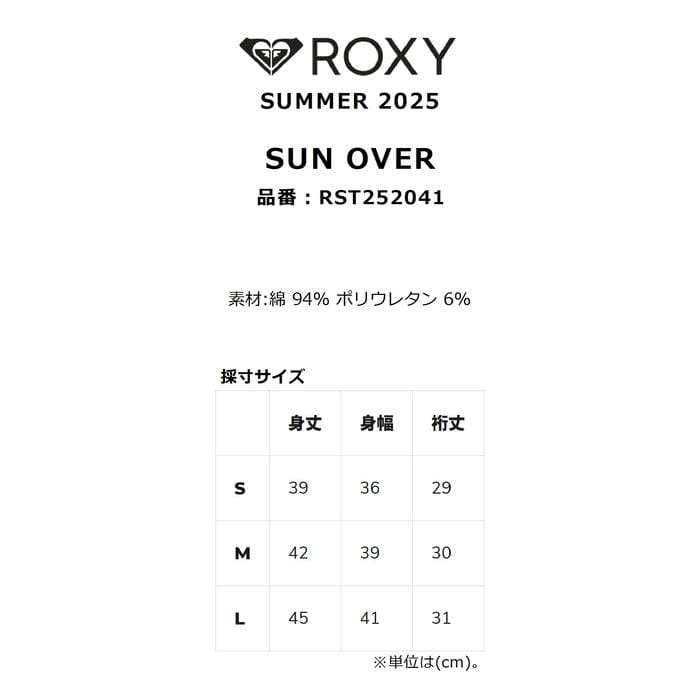メーカー希望小売価格はメーカーカタログに基づいて掲載しています商品説明モデル名ROXYSUN OVER定価:4400+(税)サイズS , M , LカラーBLU , KHA , NVY概要配色使いがかわいい、コンパクトなラグランスリーブのチビT。おへそが見える丈感で、スポーティレトロな雰囲気です。伸び感のある素材で、着心地も◎。胸元にはスポーティなROXYのロゴプリントをあしらいました。ワイドパンツと合わせればイマドキのコーディネートに仕上がります。素材綿 94% ポリウレタン 6%※注意事項●返品について●お客様都合によるご注文後の返品・キャンセル・交換は一切受け付けておりませんので、予めご了承下さい。●商品画像について●撮影状況、PC状況により、色合いが若干異なる場合がありますので、ご了承の上ご購入ください。●商品欠品について●掲載されている全ての商品は実店舗・他のネットショッピングでも販売しております。ご注文を承り次第在庫を確保しますが、完売の際はご容赦下さい。 ●送料について●北海道・沖縄・離島等の場合、別途送料が必要となります。