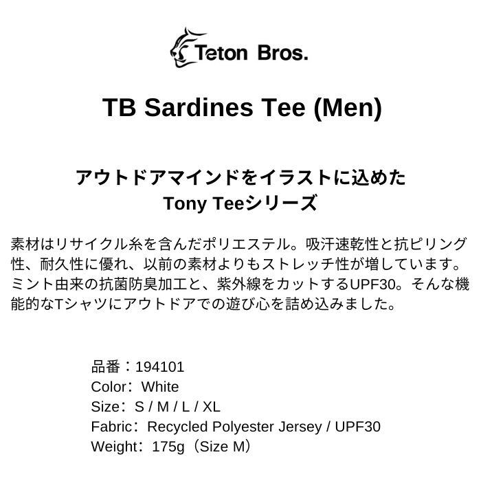 TETON BROS ティートンブロス 194101 TB Sardines Tee Men ショートスリーブTシャツ White 伸縮性 吸汗速乾性 抗菌防臭 紫外線カット 正規品