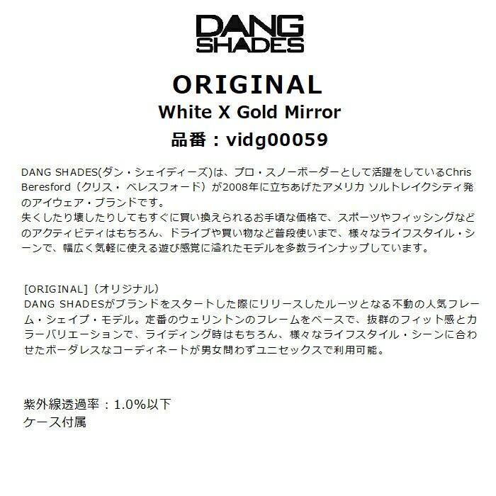 DANG SHADES ダンシェイディーズ ORIGINAL vidg00059 オリジナル ホワイト ゴールドミラー ロゴ入りポーチ付属 UV400仕様 軽量 サングラス 正規品
