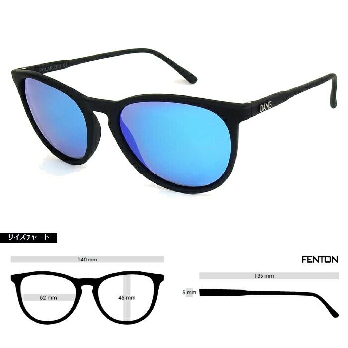 メーカー希望小売価格はメーカーカタログに基づいて掲載しています商品説明モデル名DANG SHADESFENTON定価:5000+(税)概要[FENTON](フェントン)Dang Shades のオーナー兼サポート・ライダーのクリス・ベレスフォードが、10代前半まで過ごした街のストリートの名前が由来になった、ラウンド型のフレーム・モデル。ストリートはもちろんアクティブなシチュエーションにもマッチし、男女問わずユニセックスに使用可能。テンプルの「DANG」ロゴはメタル・ロゴを埋め込んだ仕様となります。ネオプレン製ケース付属。[Polarized(偏光レンズ)]視界の色調を損なうことなくコントラストを強め、水面やガラス・道路・雪原などのギラギラした乱反射をカットし、目が疲れにくいスッキリとした快適な視界を確保します。カラーフレーム:ブラック・ソフトレンズ:ブルーミラー / 偏光レンズ可視光線透過率約15%※注意事項●返品について●お客様都合によるご注文後の返品・キャンセル・交換は一切受け付けておりませんので、予めご了承下さい。●商品画像について●撮影状況、PC状況により、色合いが若干異なる場合がありますので、ご了承の上ご購入ください。●商品欠品について●掲載されている全ての商品は実店舗・他のネットショッピングでも販売しております。ご注文を承り次第在庫を確保しますが、完売の際はご容赦下さい。 ●送料について●北海道・沖縄・離島等の場合、別途送料が必要となります。
