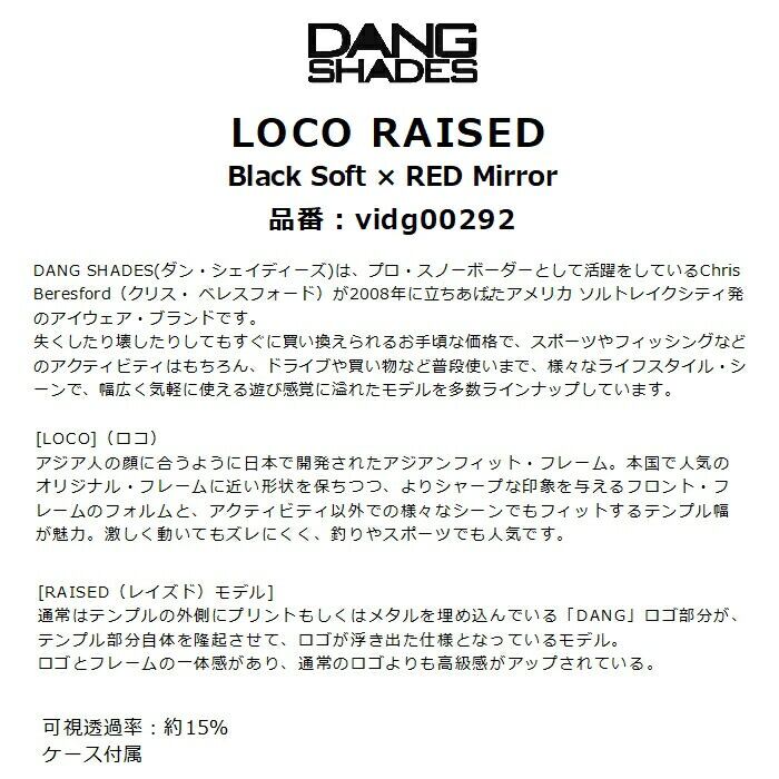 DANG SHADES ダンシェイディーズ LOCO RAISED vidg00292 ロコ レイズド ブラック・ソフト レッドミラー 立体ロゴ 日本限定 ケース付属 サングラス 正規品
