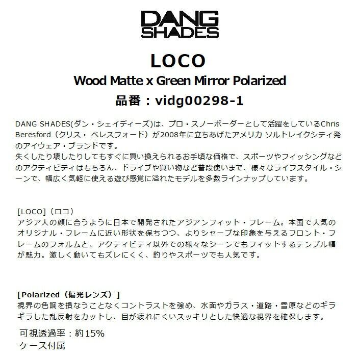 DANG SHADES ダンシェイディーズ LOCO vidg00298-1 ロコ 偏光レンズ ウッド・マット グリーンミラー 日本限定 アジアンフィット ケース付属 サングラス 正規品