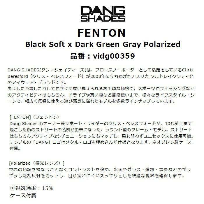 DANG SHADES ダンシェイディーズ FENTON vidg00359 フェントン 偏光レンズ ブラック・ソフト ダークグリーングレー ケース付属 メタルロゴ サングラス 正規品