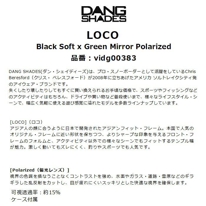 DANG SHADES ダンシェイディーズ LOCO vidg00383 ロコ 偏光レンズ ブラック・ソフト グリーンミラー 日本限定 アジアンフィット ケース付属 サングラス 正規品