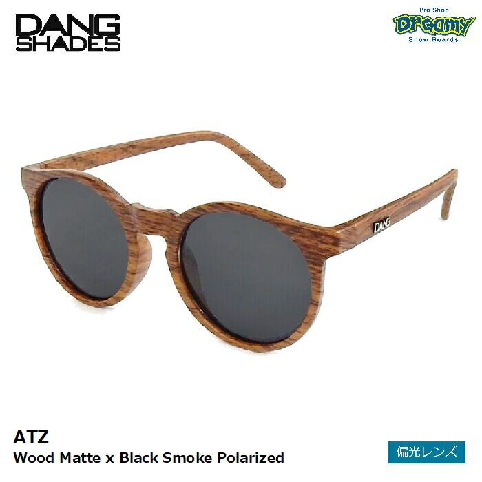 メーカー希望小売価格はメーカーカタログに基づいて掲載しています商品説明モデル名DANG SHADESATZ定価:5000+(税)概要[ATZ]ATZ(エー・ティー・ゼット)は、小さめのラウンド・フレームがベースで、スタイリッシュなシェイプの仕上りは男女限らずフィットするフレームモデル。他のモデルでも定番的に人気の高いウッド柄のフレームに、ブラックス・スモークの偏光レンズの組み合わせは、様々なライフスタイル・シーンに合わせたボーダレスなコーディネートが男女問わずユニセックスで利用可能。[Polarized(偏光レンズ)]視界の色調を損なうことなくコントラストを強め、水面やガラス・道路・雪原などのギラギラした乱反射をカットし、目が疲れにくいスッキリとした快適な視界を確保します。[Limited Anti-Fog(リミテッド・アンチフォグ)] レンズに曇り止め加工が施されておりますが、効果は永久的ではありません。カラーフレーム:ウッド・マットレンズ:ブラックスモーク / 偏光レンズ / リミテッド・アンチフォグ可視光線透過率約15%※注意事項●返品について●お客様都合によるご注文後の返品・キャンセル・交換は一切受け付けておりませんので、予めご了承下さい。●商品画像について●撮影状況、PC状況により、色合いが若干異なる場合がありますので、ご了承の上ご購入ください。●商品欠品について●掲載されている全ての商品は実店舗・他のネットショッピングでも販売しております。ご注文を承り次第在庫を確保しますが、完売の際はご容赦下さい。 ●送料について●北海道・沖縄・離島等の場合、別途送料が必要となります。