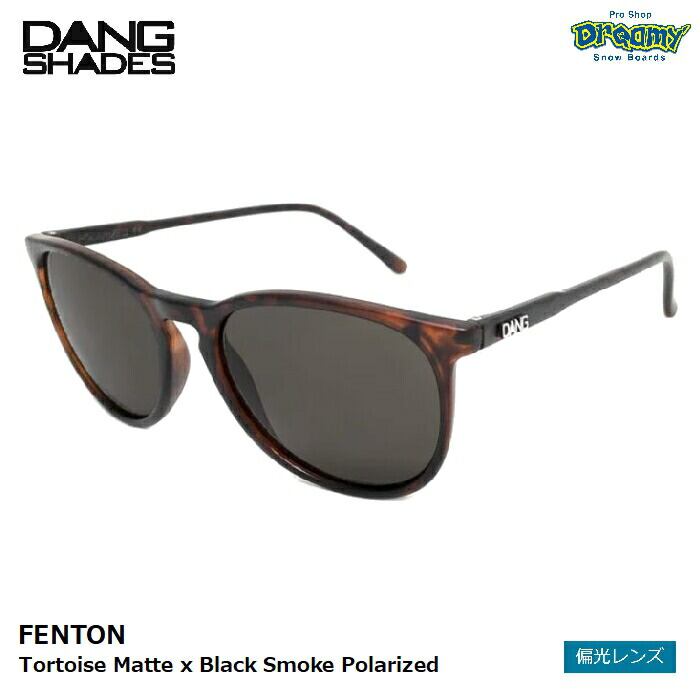 メーカー希望小売価格はメーカーカタログに基づいて掲載しています商品説明モデル名DANG SHADESFENTON定価:5000+(税)概要[FENTON](フェントン)Dang Shades のオーナー兼サポート・ライダーのクリス・ベレスフォードが、10代前半まで過ごした街のストリートの名前が由来になった、ラウンド型のフレーム・モデル。ストリートはもちろんアクティブなシチュエーションにもマッチし、男女問わずユニセックスに使用可能。テンプルの「DANG」ロゴはメタル・ロゴを埋め込んだ仕様となります。ネオプレン製ケース付属。過去に限定数のみでリリースをして人気のあった鼈甲柄のフレームに、ブラックス・スモークの偏光レンズの組み合わせたカラー・モデル。約16グラムという軽量さに加えて、アウトドアでもタウンユースでも、オールラウンドでマッチするデザイン。[Polarized(偏光レンズ)]視界の色調を損なうことなくコントラストを強め、水面やガラス・道路・雪原などのギラギラした乱反射をカットし、目が疲れにくいスッキリとした快適な視界を確保します。カラーフレーム:トートイズ・マットレンズ:ブラックスモーク / 偏光レンズ可視光線透過率約15%※注意事項●返品について●お客様都合によるご注文後の返品・キャンセル・交換は一切受け付けておりませんので、予めご了承下さい。●商品画像について●撮影状況、PC状況により、色合いが若干異なる場合がありますので、ご了承の上ご購入ください。●商品欠品について●掲載されている全ての商品は実店舗・他のネットショッピングでも販売しております。ご注文を承り次第在庫を確保しますが、完売の際はご容赦下さい。 ●送料について●北海道・沖縄・離島等の場合、別途送料が必要となります。