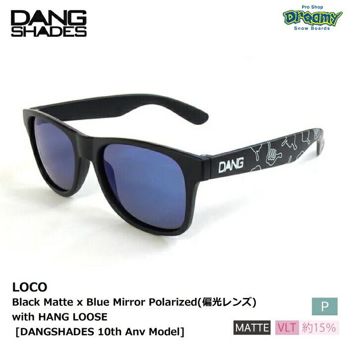 DANG SHADES ダンシェイディーズ LOCO vidg00325 ロコ 偏光レンズ ブラック・マット with HANG LOOSE ブルーミラー ケース付属 ロゴ サングラス 正規品