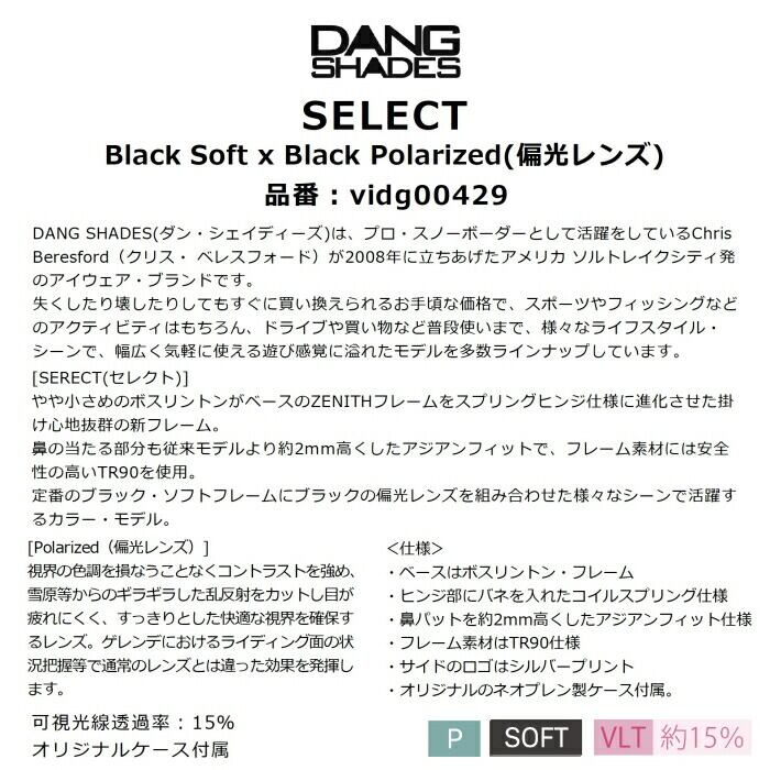 DANG SHADES ダンシェイディーズ SELECT vidg00429 セレクト 偏光レンズ ブラック・ソフト ブラック ZENITHフレーム TR90 ケース付属 サングラス 正規品