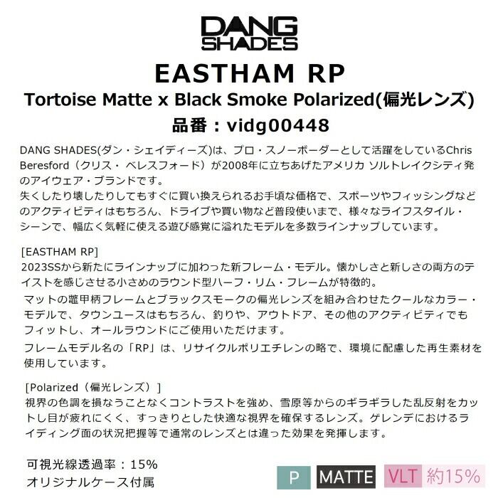 DANG SHADES ダンシェイディーズ EASTHAM RP vidg00448 イーストハム・アールピー 偏光 トートイズ・マット ブラックスモーク ケース付 再生素材 サングラス 正規品