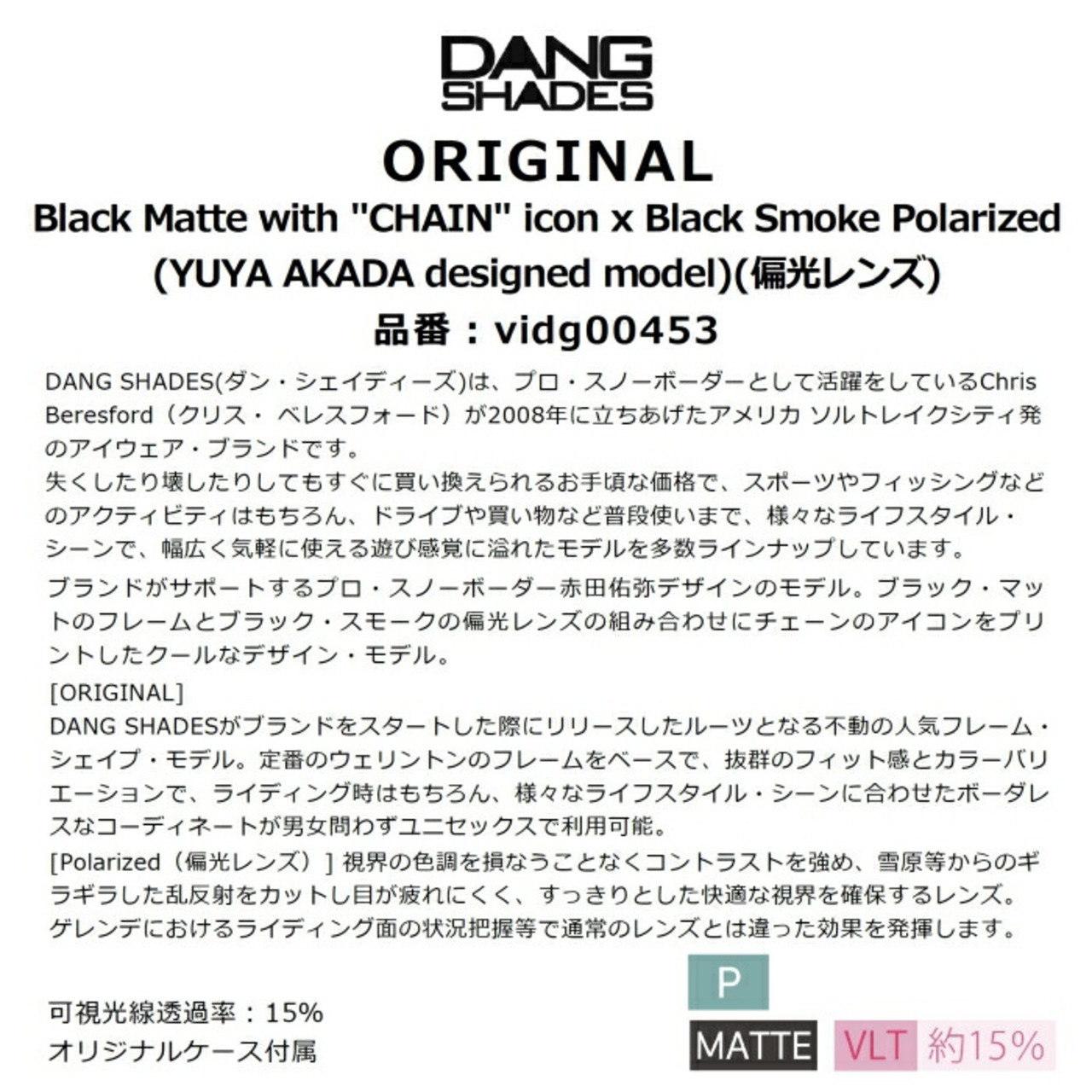 DANG SHADES ダンシェイディーズ ORIGINAL vidg00453 オリジナル 偏光 ブラック・マット with チェインアイコン ブラックスモーク ポーチ付属 サングラス 正規品