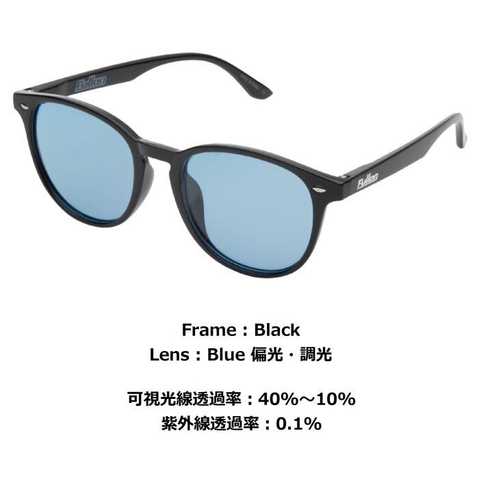 FULLON フローン FGL 005-3 Black Blue 偏光・調光レンズ 可視光線透過率40%〜10% ボストン型 バネ蝶番 メガネ拭き兼用超繊維巾着袋付属 サングラス 正規品