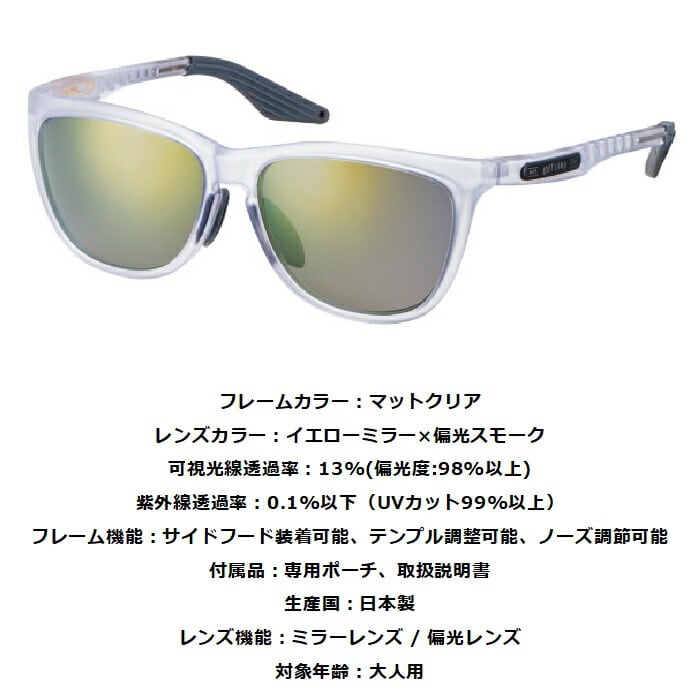 フレーム機能:サイドフード装着可能、テンプル調整可能、ノーズ調節可能
