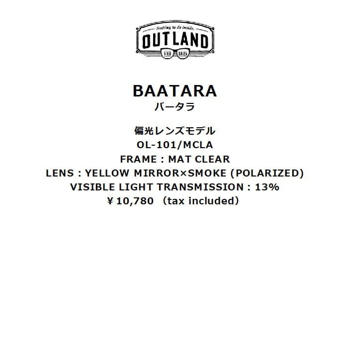 OUTLAND アウトランド BAATARA バータラ OL-101 マットクリア ミラー偏光レンズ サイドフード テンプル/ノーズ調整可 ケース付 リーシュコード 山本光学 正規品