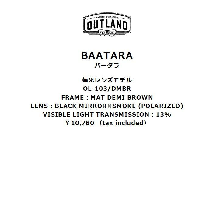 OUTLANDアウトランド BAATARA バータラ OL-103 マットデミブラウン ミラー偏光レンズ サイドフード テンプル/ノーズ調整可 ケース/リーシュ付属 山本光学 正規品