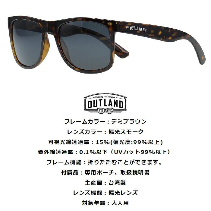 OUTLAND アウトランド NAEROY ネーロイ OL-302 デミブラウン 偏光スモークレンズ フォールディンググラス 専用ポーチ付属 折りたたみ POLAR 山本光学 正規品