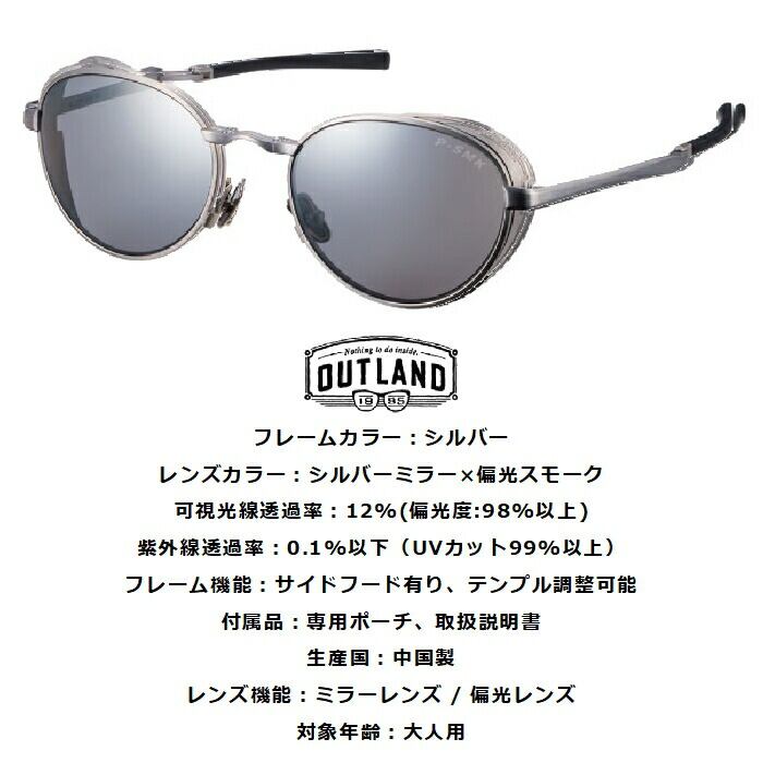 OUTLAND アウトランド SELENGA セレンガ OL-402 シルバー シルバーミラーx偏光スモーク 折り畳み可能 サイドフード テンプル調整可能 ケース付 山本光学 正規品
