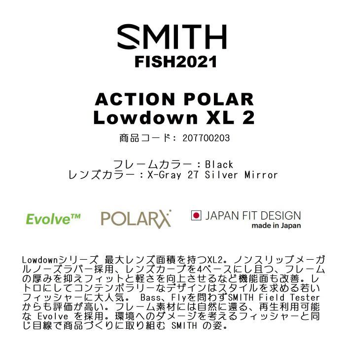 SMITH スミス ACTION POLAR Lowdown XL 2 207700203 ローダウン エックスエル ツー Black X-Gray 27 Silver Mirror 偏光レンズ 日本製 釣り フィッシング 正規品