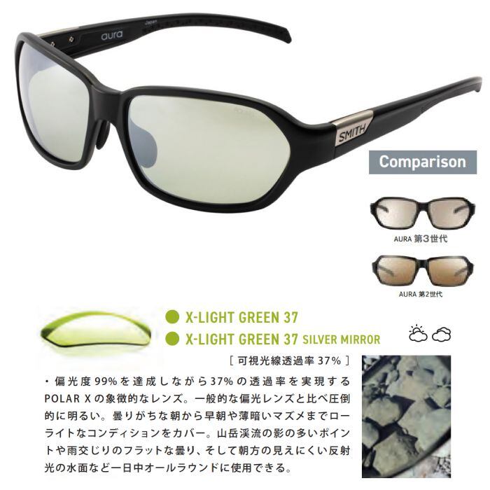 SMITH スミス ACTION POLAR Aura 第3世代 207700402 オーラ MatteBlack X-LightGreen37 Silver Mirror 偏光 ジャパンフィット 日本製 釣り フィッシング 正規品