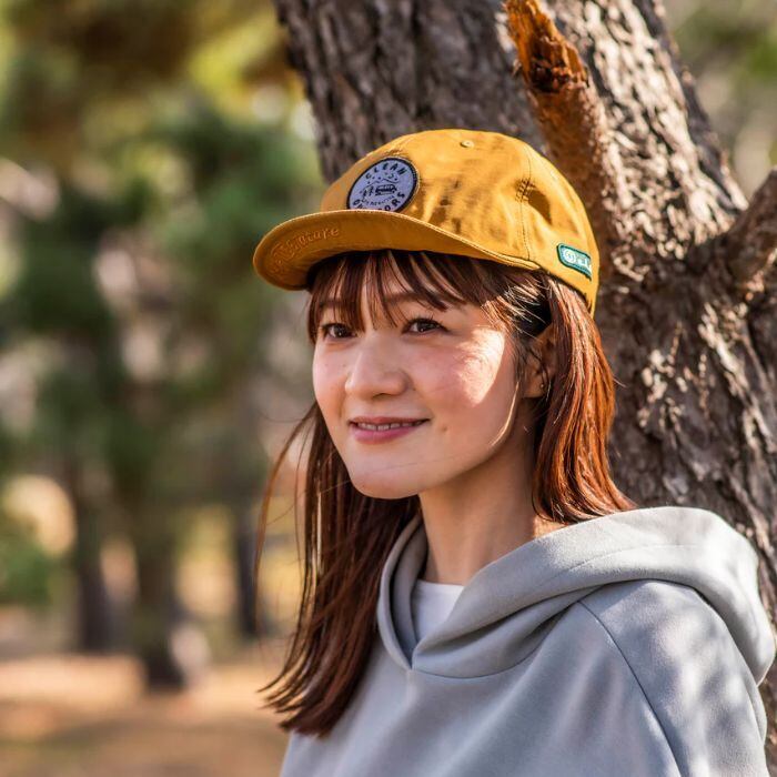 つば裏の『Save THE Nature』の刺繍は生地と同色にしてさりげなく後頭部には『KEEP GREEN』の刺繍も。