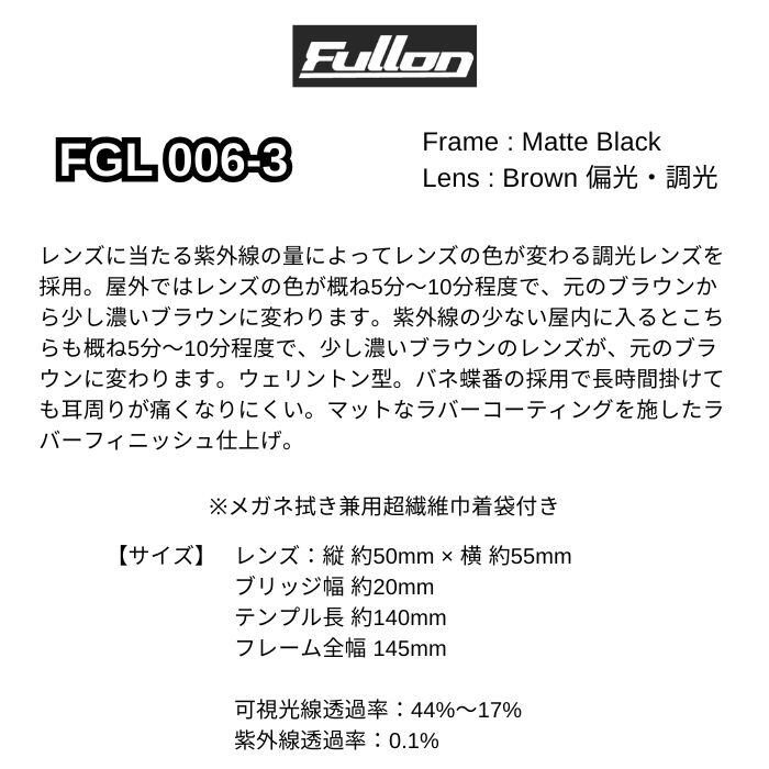 FULLON フローン FGL006-3 Matte Black Brown 偏光・調光 メガネ拭き兼用超繊維巾着袋付属 ロゴ入り サングラス 正規品