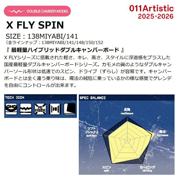 25-26 011Artistic X FLY SPIN ゼロワンワンアーティスティック エックスフライスピン ダブルキャンバーモデル グラトリ 国産 スノーボード 板 2026 正規品