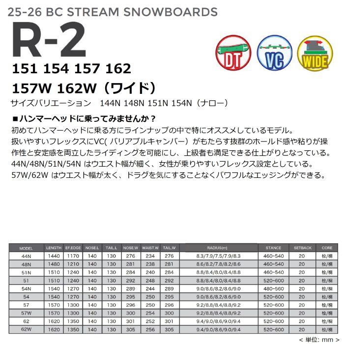 25-26 BC STREAM R-2 ディレクショナルツイン バリアブルキャンバー カービング ハンマーヘッド ビーシーストリーム アールツー 国産 スノーボード 板 正規品