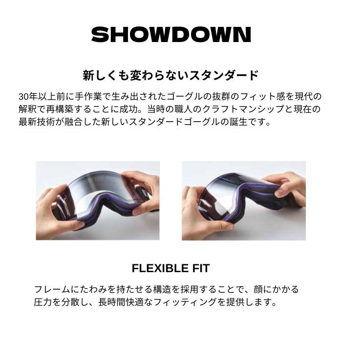 メーカー希望小売価格はメーカーカタログに基づいて掲載しています商品説明モデル名DICESHOWDOWN定価:23000+(税)モデルSHOWDOWNカラーOLV概要フォトクロミック・テクノロジー(調光)を搭載したレンズ。ウルトラレンズの特長である「凹凸が見やすい」機能はそのままに、降雪時や曇天時~晴天時までのあらゆる環境でレンズの明るさを自動的に調整する全天候レンズ。詳細新しくも変わらないスタンダード30年以上前に手作業で生み出されたゴーグルの抜群のフィット感を現代の解釈で再構築することに成功。当時の職人のクラフトマンシップと現在の最新技術が融合した新しいスタンダードゴーグルの誕生です。【FLEXIBLE FIT】フレームにたわみを持たせる構造を採用することで、顔にかかる圧力を分散し、長時間快適なフィッティングを提供します。※注意事項●返品について●お客様都合によるご注文後の返品・キャンセル・交換は一切受け付けておりませんので、予めご了承下さい。●商品画像について●撮影状況、PC状況により、色合いが若干異なる場合がありますので、ご了承の上ご購入ください。●商品欠品について●掲載されている全ての商品は実店舗・他のネットショッピングでも販売しております。ご注文を承り次第在庫を確保しますが、完売の際はご容赦下さい。 ●送料について●北海道・沖縄・離島等の場合、別途送料が必要となります。