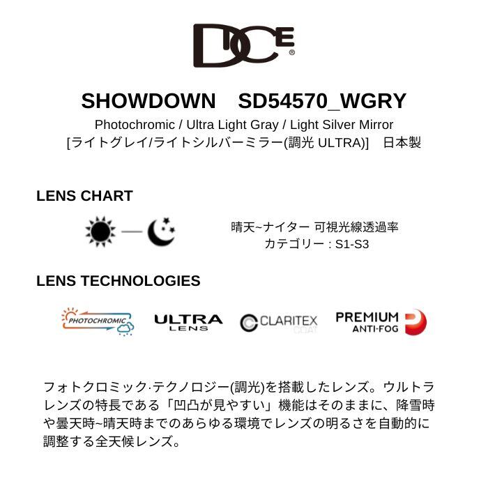 25-26 DICE ダイス SHOWDOWN SD54570_WGRY ライトグレイ/ライトシルバーミラー 調光 ULTRAレンズ FLEXIBLE FIT プレミアムアンチフォグ 日本製 正規品