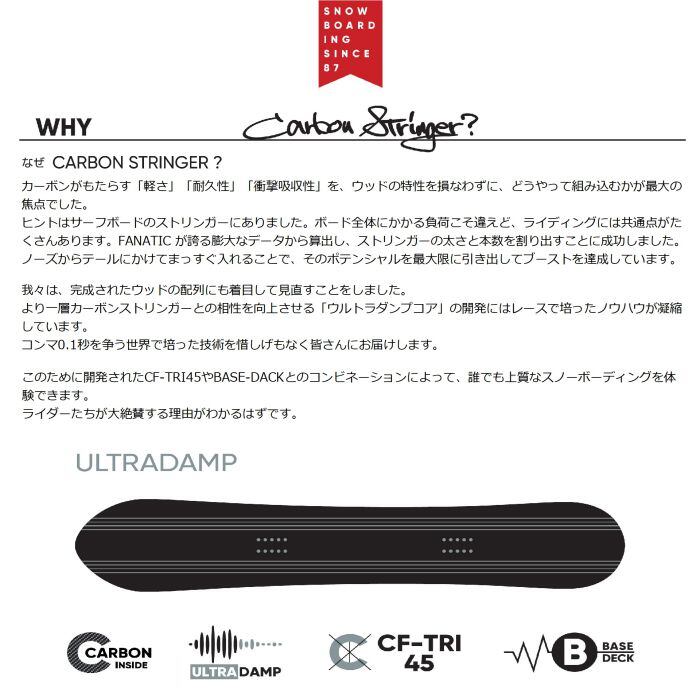 メーカー希望小売価格はメーカーカタログに基づいて掲載しています商品説明モデル名FANATICTRICKMASTER定価:77000+(税)サイズ139 , 143 , 147 , 150 , 153 , 156モデルTRICKMASTER商品説明メリハリのあるハッキリとしたアーチ形状は、初見では驚く人もいるとか。逆にそのアーチ形状が全くキツく感じない仕上がりになっているのは、さすがのFANATICと称賛されても良いとさえ思っています。2つのキャンバーがもたらす安心感とセンターのロッカーによる軽快さは、ライダーのエネルギーを温存します。最終リフトまでフリーライディングやトリックの練習が可能になれば、ライバルよりも早いステップアップが可能です。構造Vダブルキャンバー購入特典・プレチューン/WAX FUTUREサービス・オリジナルソールカバー・デッキシート・ショートビス(15.5mm)上記から2点(重複無効)■プレチューンとは?NEW BOARDのエッジ角の変更、エッジの立て直し調整、ベースWAXを行い、BOARDの性能を100%引き出すためのチューニングです※注意事項●返品について●お客様都合によるご注文後の返品・キャンセル・交換は一切受け付けておりませんので、予めご了承下さい。●商品画像について●撮影状況、PC状況により、色合いが若干異なる場合がありますので、ご了承の上ご購入ください。●商品欠品について●掲載されている全ての商品は実店舗・他のネットショッピングでも販売しております。ご注文を承り次第在庫を確保しますが、完売の際はご容赦下さい。 ●送料について●北海道・沖縄・離島等の場合、別途送料が必要となります。