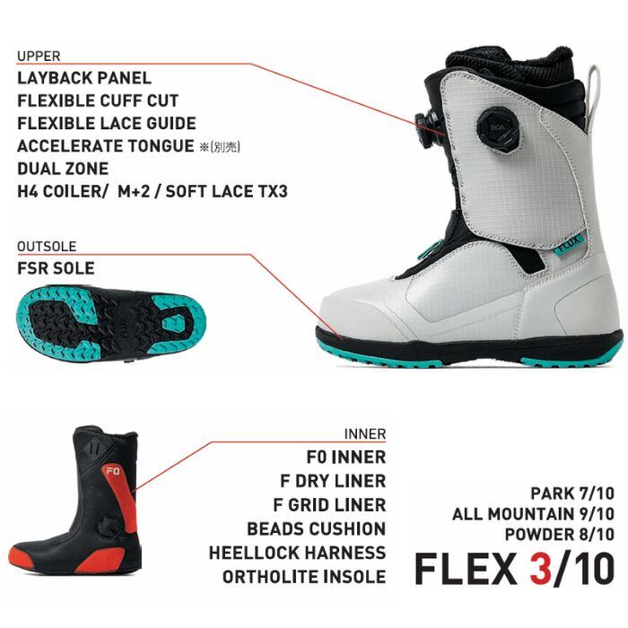 メーカー希望小売価格はメーカーカタログに基づいて掲載しています商品説明モデル名FLUXLB-BOA定価:57000+(税)サイズ23 , 23.5 , 24 , 24.5 , 25 , 25.5 , 26 , 26.5 , 27 , 27.5 , 28 , 28.5 , 29 , 29.5 , 30カラーOFFWHITE詳細ソフトフレックスでありながら、ダブルBOAによる締め分けに加え、かかと浮き防止と、ビーズクッションの優れたフィット感が標準装備。アウターはバインディングとのマッチングを考慮したデザインと、よりしなやかなフレックスに対応したレイバックパネルと自然な屈曲を生み出すFLEXIBLE カフカット、甲に優しくフィットするFLEXIBLE LACE GUIDE、防水性を高めるシームレスデザインが足元を引き立たせます。※注意事項●返品について●お客様都合によるご注文後の返品・キャンセル・交換は一切受け付けておりませんので、予めご了承下さい。●商品画像について●撮影状況、PC状況により、色合いが若干異なる場合がありますので、ご了承の上ご購入ください。●商品欠品について●掲載されている全ての商品は実店舗・他のネットショッピングでも販売しております。ご注文を承り次第在庫を確保しますが、完売の際はご容赦下さい。 ●送料について●北海道・沖縄・離島等の場合、別途送料が必要となります。