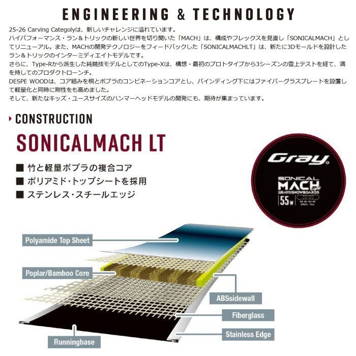25-26 GRAY SONICALMACH LT 154/155W/160W バリオキャンバー ディレクショナルツイン カービング ラントリ グレイ ソニカルマッハライト スノーボード 板 正規品