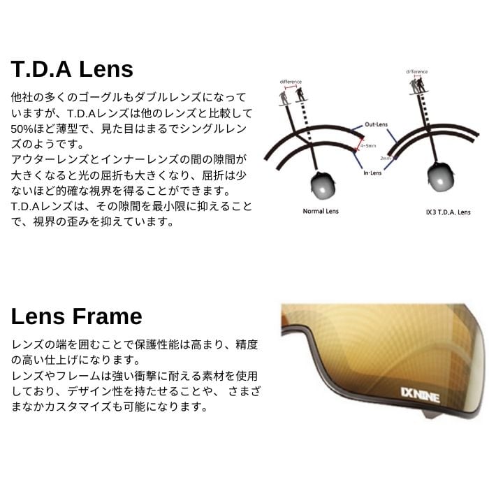 メーカー希望小売価格はメーカーカタログに基づいて掲載しています商品説明モデル名IX NINEBarely Pink定価:25500+(税)サイズO/SレンズPink Metalized概要IX3PROゴーグルにはIXNINE独自のクリックオンシステムが搭載されており、ゴーグルを装着したままレンズを開くことで、内部の湿気を逃すことができ、常に快適な視界を提供します。また、クリックオンシステムを活用することで、スマートフォンやアクションカメラのディスプレイを素早くチェックすることもできます。詳細IX3 Pro Technology- クリック-オンシステム- T.D.Aレンズ- モールドインジェクションT.P.Uフレーム- 100% UVプロテクション- オーバーサイズデュアルシリンダーインジェクションポリカーボネイトレンズ- スーパーワイドパノラマビジョン- スーパーアンチフォグ&アンチスクラッチコーティング- 反射防止コーティングトリプルレイヤーフェイスフォーム- 裏側に滑り止めシリコン付き45mm幅ストラップ- ヘルメット対応フレーム- マイクロファイバー製ゴーグルポーチ付き- ゴーグル用ハードケース付き※注意事項●返品について●お客様都合によるご注文後の返品・キャンセル・交換は一切受け付けておりませんので、予めご了承下さい。●商品画像について●撮影状況、PC状況により、色合いが若干異なる場合がありますので、ご了承の上ご購入ください。●商品欠品について●掲載されている全ての商品は実店舗・他のネットショッピングでも販売しております。ご注文を承り次第在庫を確保しますが、完売の際はご容赦下さい。 ●送料について●北海道・沖縄・離島等の場合、別途送料が必要となります。