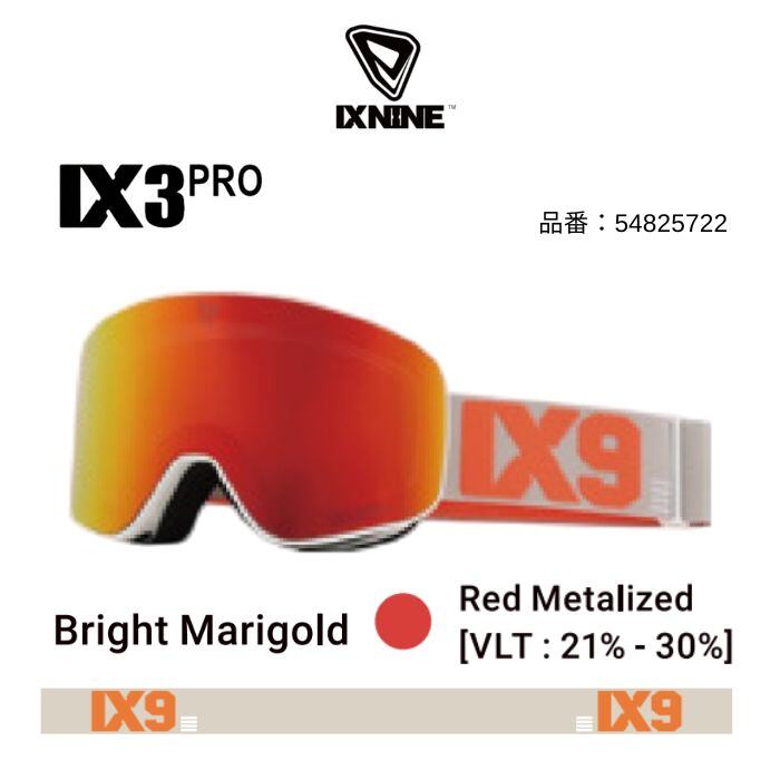 25-26 IX NINE アイエックスナイン IX3 PRO Bright Marigold Red Metalized 54825722 クリックオンシステム 滑り止め ヘルメット対応 スノーゴーグル 正規品