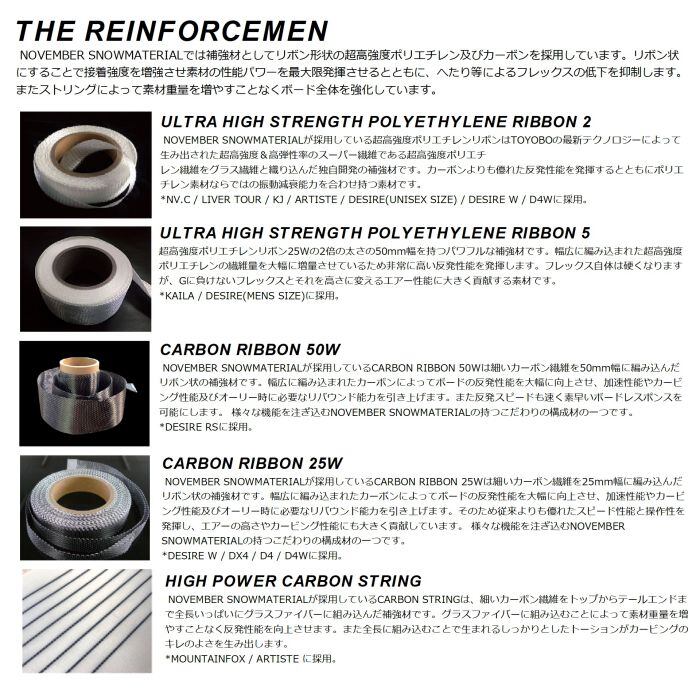メーカー希望小売価格はメーカーカタログに基づいて掲載しています商品説明モデル名NOVEMBER SNOWMATERIALARTISTE定価:99800+(税)サイズ138 , 142 , 146 , 148 , 150 , 152 , 154 , 158 , 154W , 158WモデルARTISTE商品説明NOVフラッグシップモデルARTISTがシェイプや構成材すべてを見直しフルモデルチェンジしました。シェイプは若干幅広に変更し、ジャンプでの着地やターンの安定性を向上。ドラグリスクなども軽減します。またノーズ、テールのスクエア形状を強めることでエッジグリップを向上させ、ターンやトリックのきっかけを作りやすくアップグレードしました。サイドカーブは複合サイドカット(7R)を採用し、スムーズなターン弧を描くことが可能です。また幅広になった分、前モデルよりサイドカーブのRを全体的に小さめに調整し、安定感はそのままにワイドボードにありがちなルーズな操作性を解消。ジブやグラトリ等の細かい操作や、素直でクイックな切替しも快適に行えます。構成材では超高強度ポリエチレンリボン2本をX字配置から、1本の縦配置に変更。軽量化を図るとともに、ボード中心にフレックスの芯を集中させることでトーションを使い易くし操作性の向上に成功しました。グラス補強材にはHIGH POWER CARBON STRINGを新たに採用。従来のグラス補強材にカーボン繊維を加え、縦に織り込むことで反発性能をUP。POP感が増したことでよりハイエアー、高回転スピンに挑戦できます。また2x6のバーサタイルインサートホールを採用している為、フリーライディングに対応するセットバックポジションや、多彩なスタンスワイドに調整が可能となり、パウダーからパークライドまで幅広いライディングスタイルに対応可能です。各時代のスノーボードシーンに求められる性能に常に落とし込みながら正当な進化を続けているオールラウンドツインチップモデル。NOVでどのボードにするか迷ったらまずはARTISTEに乗ってみてください。きっとあなたのライディングの助けになるはずです。形状フルキャンバー選べる 特典・プレチューン/WAX FUTUREサービス・オリジナルニットソールカバー・デッキシート・ショートビス(15.5mm)■プレチューンとは?NEW BOARDのエッジ角の変更、エッジの立て直し調整、ベースWAXを行い、BOARDの性能を100%引き出すためのチューニングです※注意事項●返品について●お客様都合によるご注文後の返品・キャンセル・交換は一切受け付けておりませんので、予めご了承下さい。●商品画像について●撮影状況、PC状況により、色合いが若干異なる場合がありますので、ご了承の上ご購入ください。●商品欠品について●掲載されている全ての商品は実店舗・他のネットショッピングでも販売しております。ご注文を承り次第在庫を確保しますが、完売の際はご容赦下さい。 ●送料について●北海道・沖縄・離島等の場合、別途送料が必要となります。