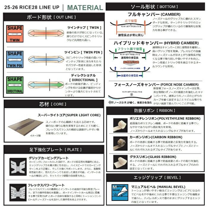 25-26 RICE28 RT6 LTD ライストゥエンティーエイト ハイブリッドキャンバー フルツイン オールラウンド グラトリ リミテッド 国産 スノーボード 板 2026 正規品
