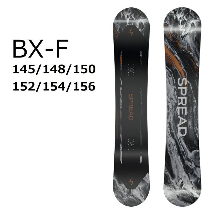 メーカー希望小売価格はメーカーカタログに基づいて掲載しています商品説明モデル名SPREADBX-F定価:88000+(税)サイズ145 , 148 , 150 , 152 , 154 , 156モデルBX-F商品説明BX をベースに、ソフトなフレックスを採用することで軽量化を実現。スウィングウェイトが軽減され、スピン性能が大幅に向上。さらに、キャンバー形状の特性はそのままに自在性を高め、優れた操作性を実現しました。ソフトなフレックスにより、グラトリにおいて抜群のパフォーマンスを発揮します。軽快なライディングを求めるライダーに最適。形状SVC選べる 特典・プレチューン/WAX FUTUREサービス・オリジナルニットソールカバー・デッキシート・ショートビス(15.5mm)■プレチューンとは?NEW BOARDのエッジ角の変更、エッジの立て直し調整、ベースWAXを行い、BOARDの性能を100%引き出すためのチューニングです※注意事項●返品について●お客様都合によるご注文後の返品・キャンセル・交換は一切受け付けておりませんので、予めご了承下さい。●商品画像について●撮影状況、PC状況により、色合いが若干異なる場合がありますので、ご了承の上ご購入ください。●商品欠品について●掲載されている全ての商品は実店舗・他のネットショッピングでも販売しております。ご注文を承り次第在庫を確保しますが、完売の際はご容赦下さい。 ●送料について●北海道・沖縄・離島等の場合、別途送料が必要となります。