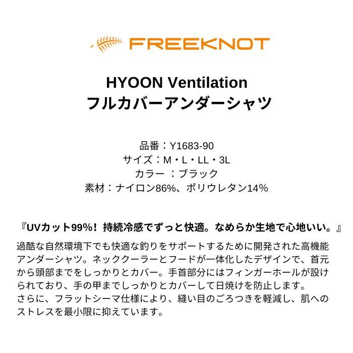 FREEKNOT フリーノット HYOON Ventilation フルカバーアンダーシャツ Y1683-90 ブラック 吸水速乾 接触冷感 UVカット ストレッチ 正規品