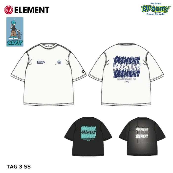 ELEMENT TAG 3 SS BF021223 Tシャツ ビッグフィット 半袖 オープンエンド糸 天竺素材 バックプリント ロゴ パッチ エレメント 正規品