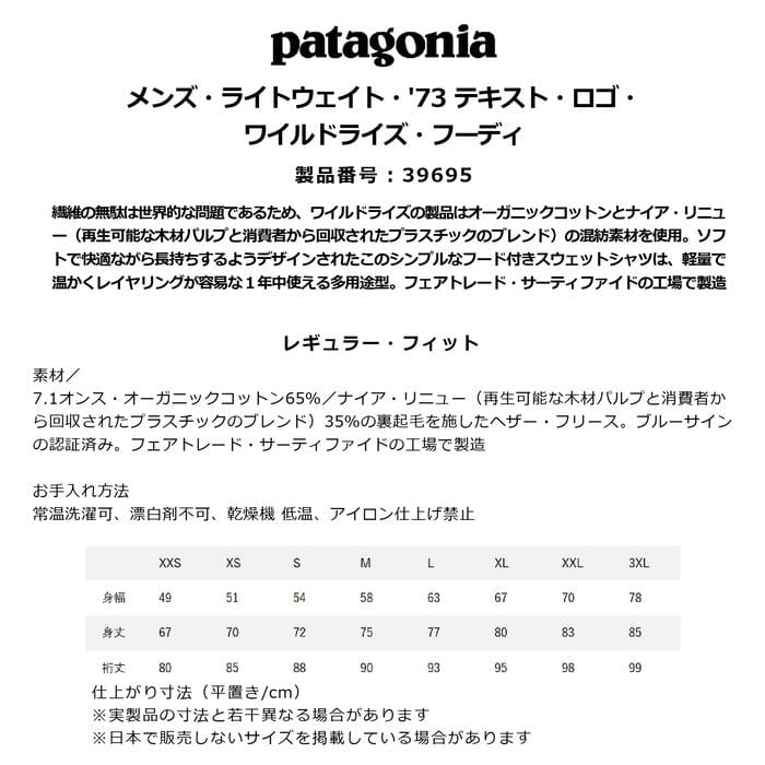 patagonia メンズ・ライトウェイト・'73 テキスト・ロゴ・ワイルドライズ・フーディ 39695 レギュラーフィット オーガニックコットン パーカー パタゴニア 正規品