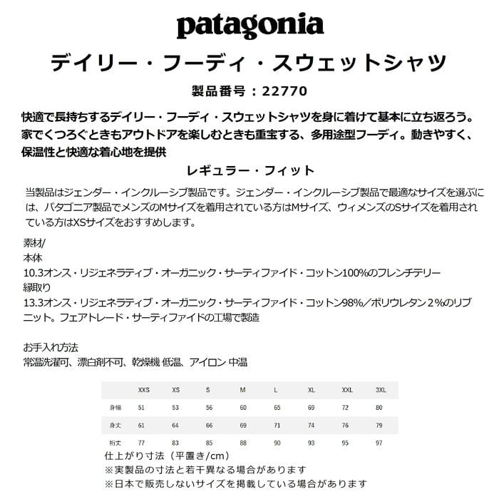 patagonia デイリー・フーディ・スウェットシャツ 22770 レギュラーフィット 長袖 オーガニックコットン ユニセックス ロゴ パーカー パタゴニア 正規品