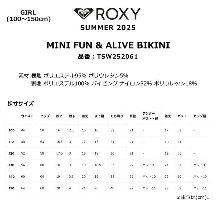 ROXY MINI FUN & ALIVE BIKINI TSW252061 キッズ ビキニ 100-150cm リブ素材 Yバック ボーイレッグショーツ ロゴ スイムウェア 水着 ロキシー ガール 正規品