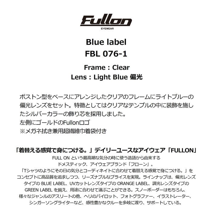FULLON FBL 076-1 クリア ライトブルー偏光レンズ UVカット ボストン型 メガネ拭き兼用超繊維巾着袋付属 シルバー飾り芯 ロゴ サングラス フローン 正規品
