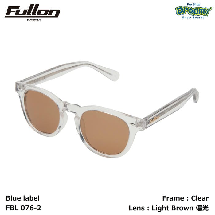 FULLON FBL 076-2 クリア ライトブラウン偏光レンズ UVカット ボストン型 メガネ拭き兼用超繊維巾着袋付属 シルバー飾り芯 ロゴ サングラス フローン 正規品