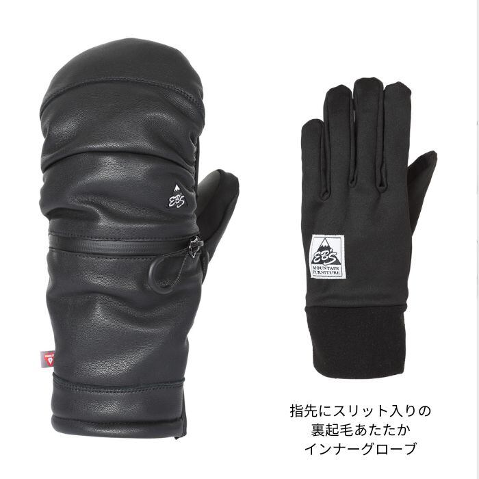 25-26 eb's エビス ARMA ZIP アルマジップ 4500013 BLACK 本革 primaloft 高機能インナー ミトン スノーグローブ 正規品