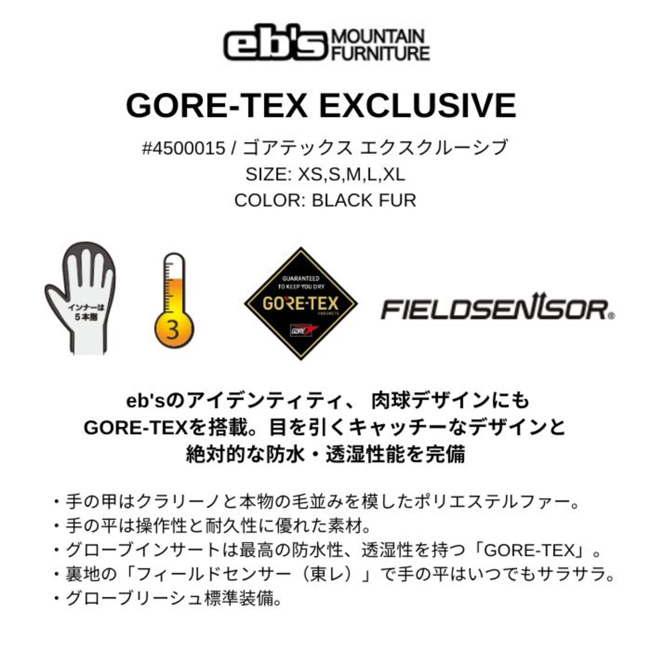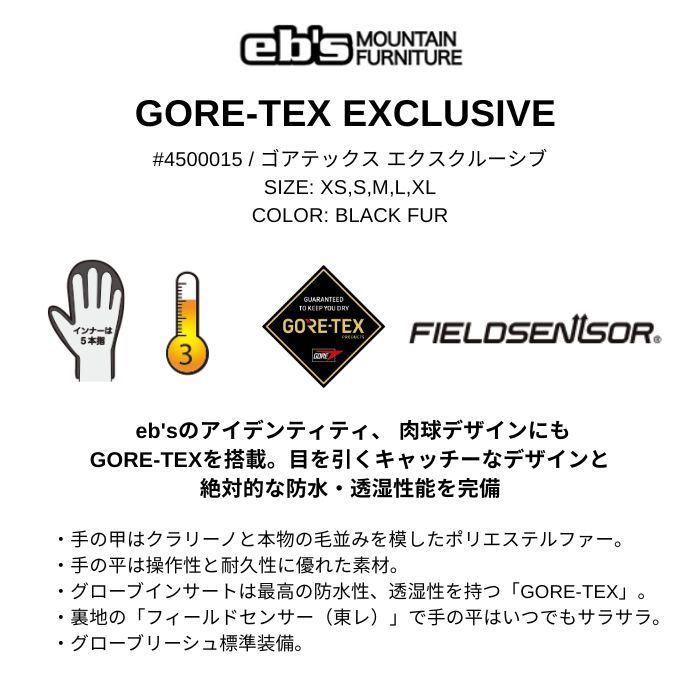 25-26 eb's エビス GORE-TEX EXCLUSIVE ゴアテックス エクスクルーシブ 4500015 BLACK FUR 防水性 透湿性 ミトン スノーグローブ 正規品