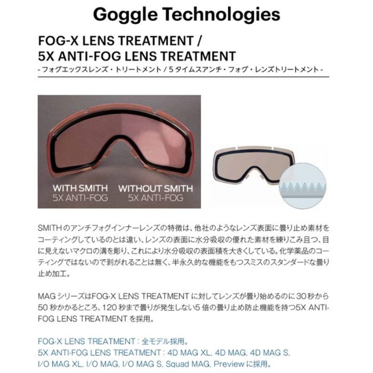 メーカー希望小売価格はメーカーカタログに基づいて掲載しています商品説明モデル名SMITH4D MAG XL定価:65000+(税)モデル4D MAG XLフレームカラーBLACK詳細要望の声も多く聞かれた4D MAG? XL。XLサイズでOTGに対応し、多くの眼鏡ユーザーにバードアイビジョンを体験してもらえることとなった。AirEvac?機能によりヘルメットとの通気問題もクリアにし、あなたにフォグフリービジョンを提供する。天候やコンディションに関わらず、簡単にレンズチェンジも可能でより広い視界をクロマポップの鮮明でクリアな世界へと導く。4D MAG?と比べて視界が13%アップした何にも阻まれない広い視界をぜひ体験して欲しい。クロマポップレンズ2枚標準装備。環境を考慮したサスティナブルパッケージ。レンズカバーが付属する。※注意事項●返品について●お客様都合によるご注文後の返品・キャンセル・交換は一切受け付けておりませんので、予めご了承下さい。●商品画像について●撮影状況、PC状況により、色合いが若干異なる場合がありますので、ご了承の上ご購入ください。●商品欠品について●掲載されている全ての商品は実店舗・他のネットショッピングでも販売しております。ご注文を承り次第在庫を確保しますが、完売の際はご容赦下さい。 ●送料について●北海道・沖縄・離島等の場合、別途送料が必要となります。